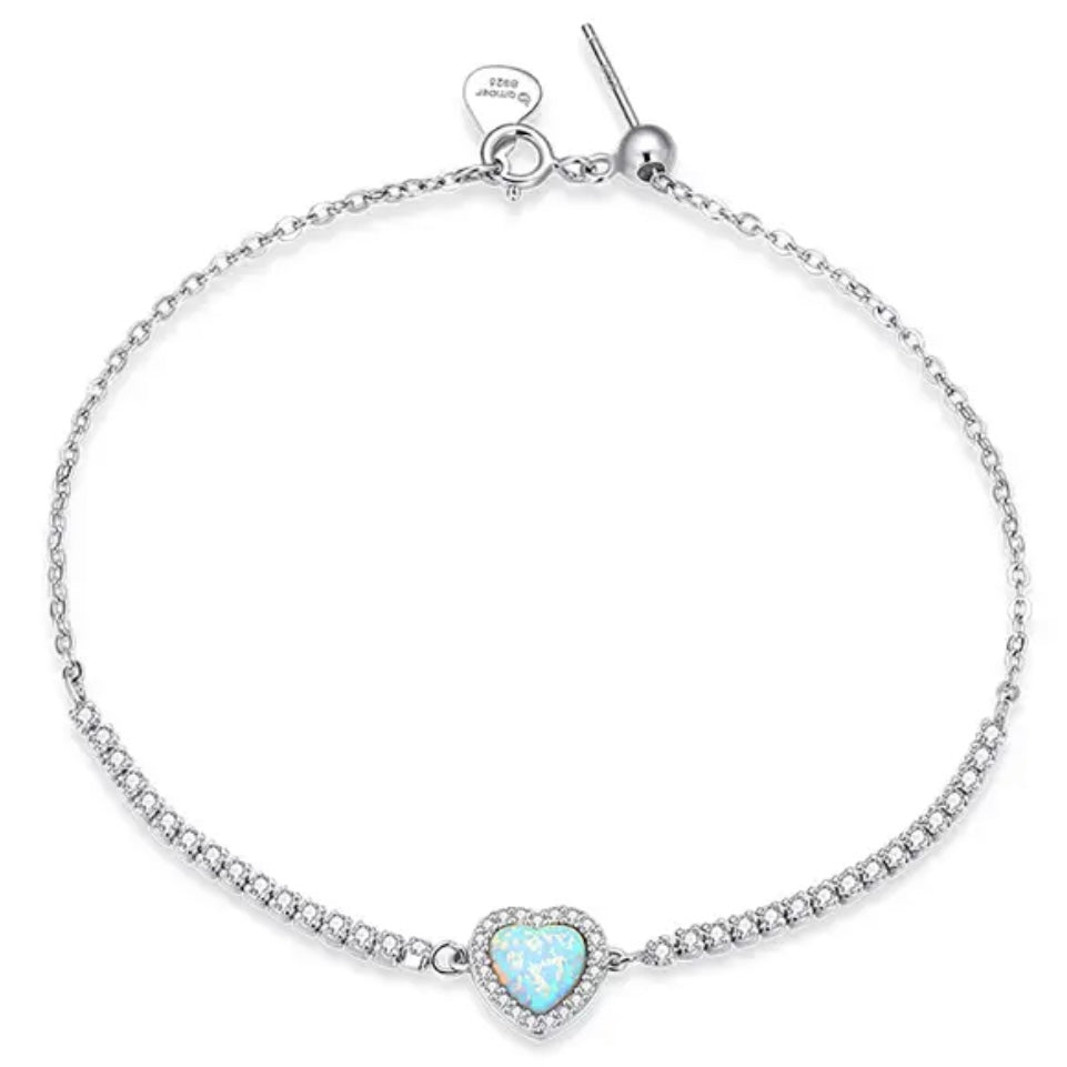 AMBROSIA STERLING SILVER OPAL HEART BRACELET
