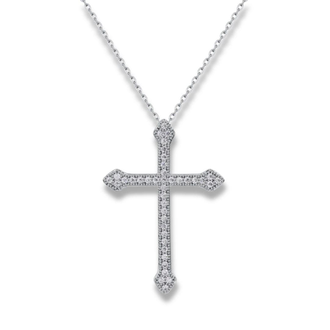GIA STERLING SILVER MOISSANITE CROSS NECKLACE