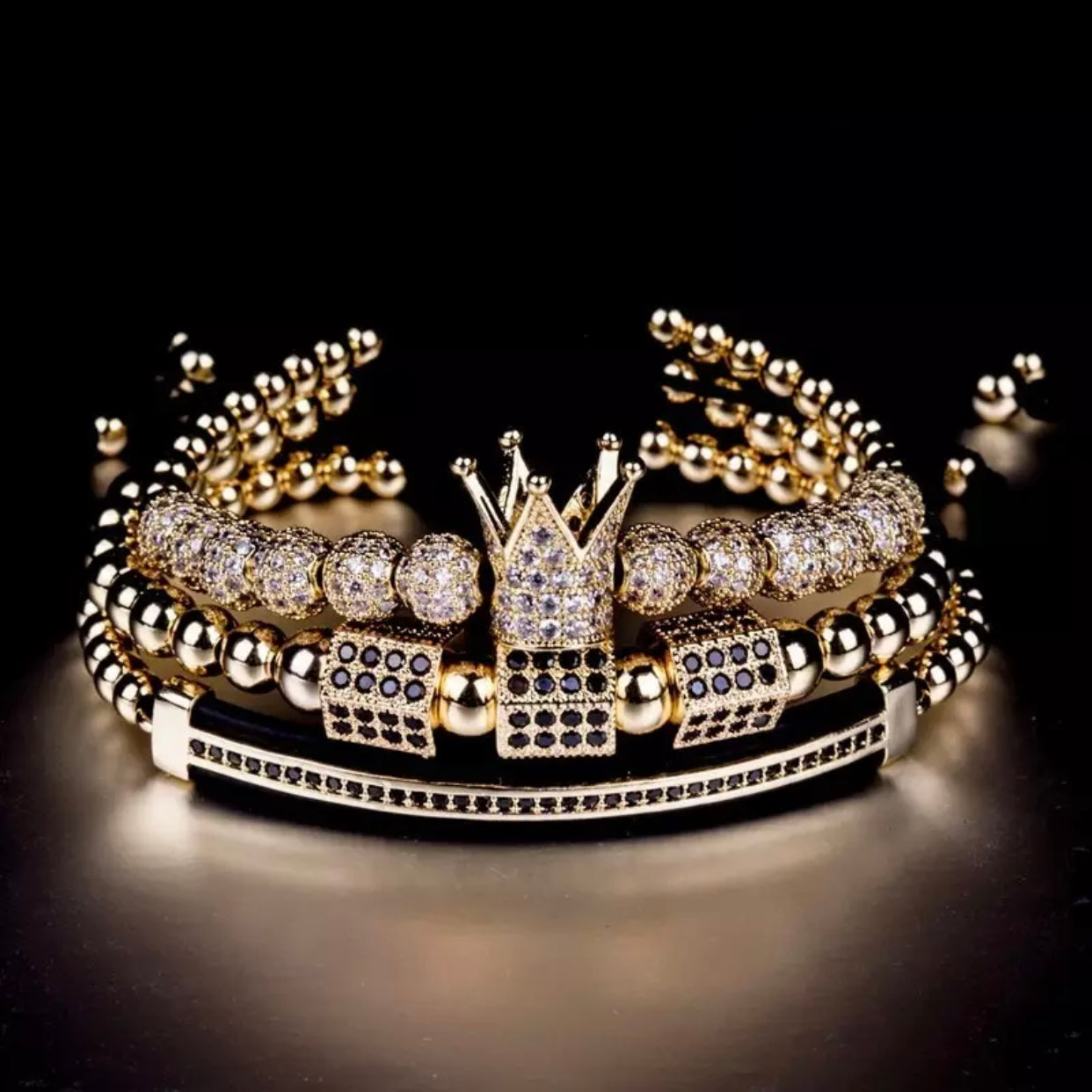 MATTEO 3 PIECE BLING BEAD CROWN MENS BRACELET