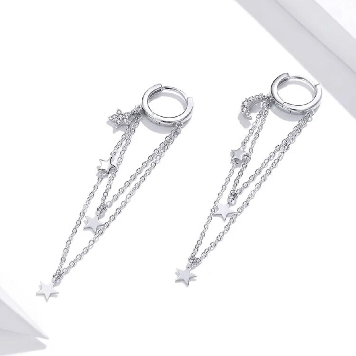 PORTIA STERLING SILVER MOON AND STARS TASSEL EARRINGS